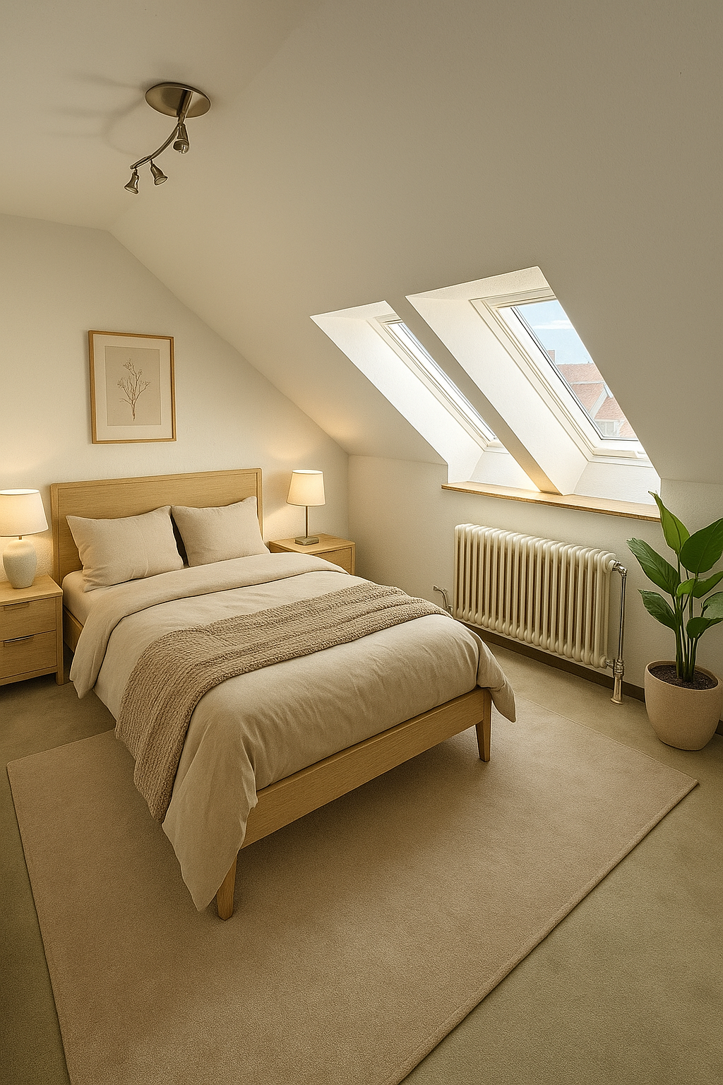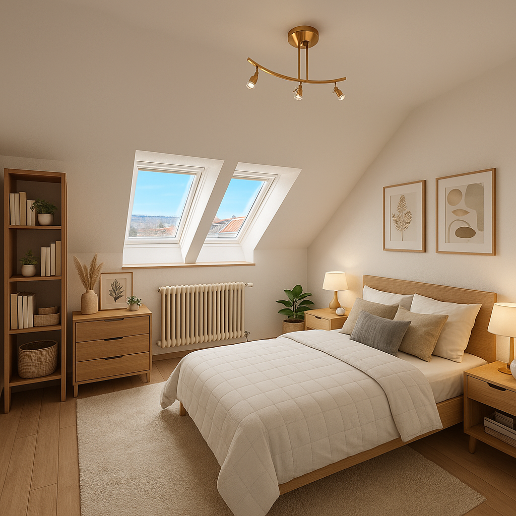 2x Schlafzimmer, Dachfenster mit Sonnenschutz und Wärmeschutz