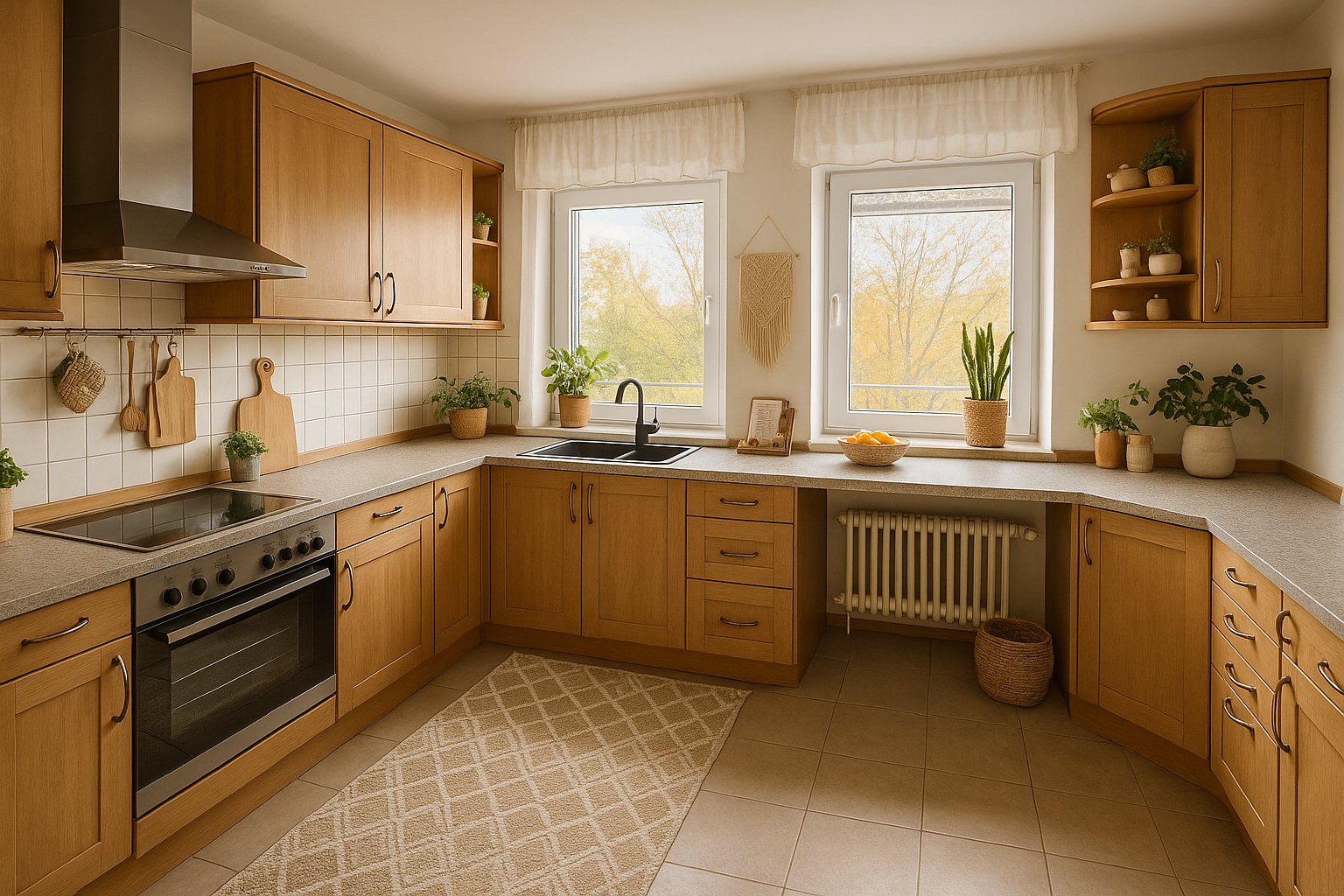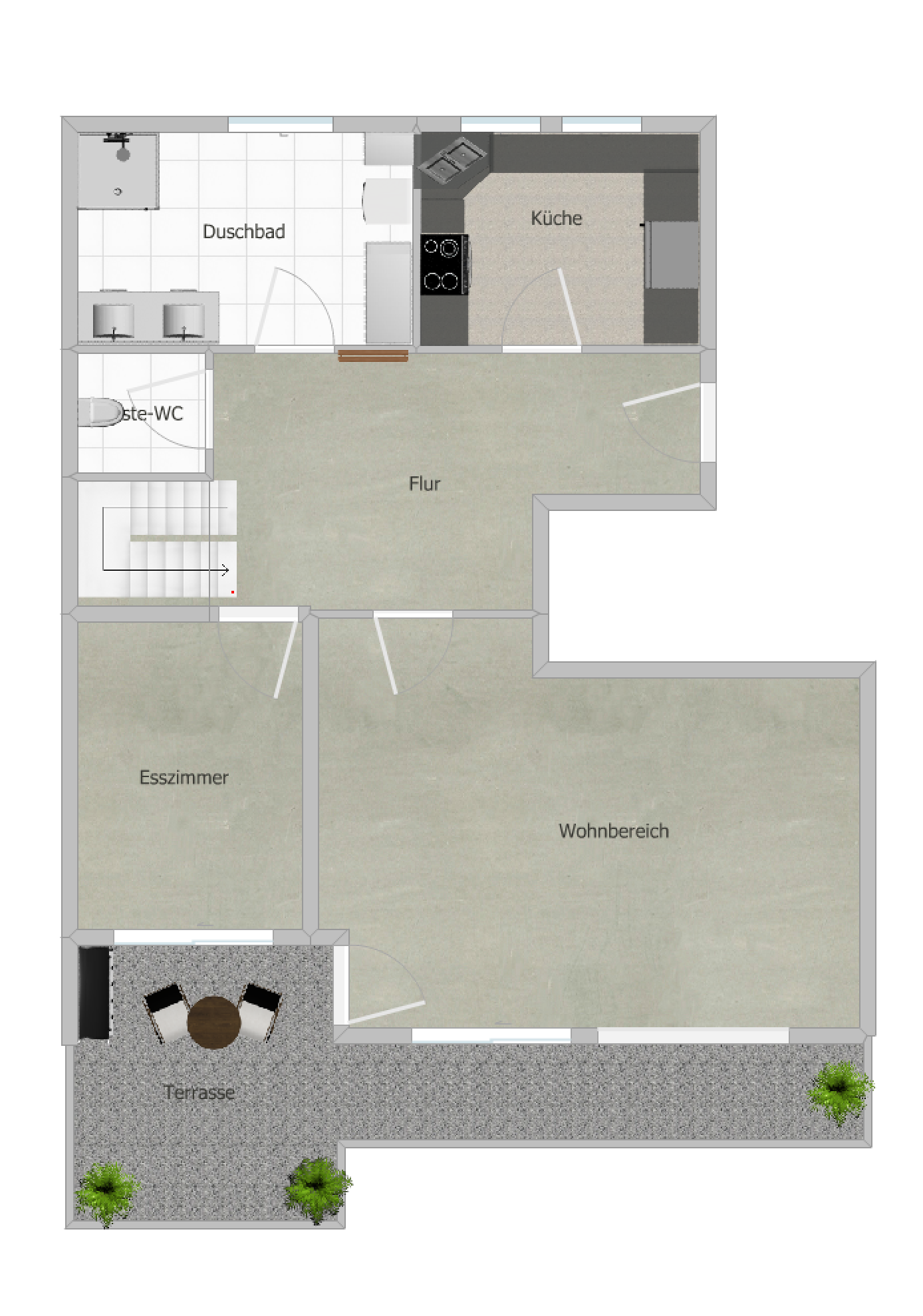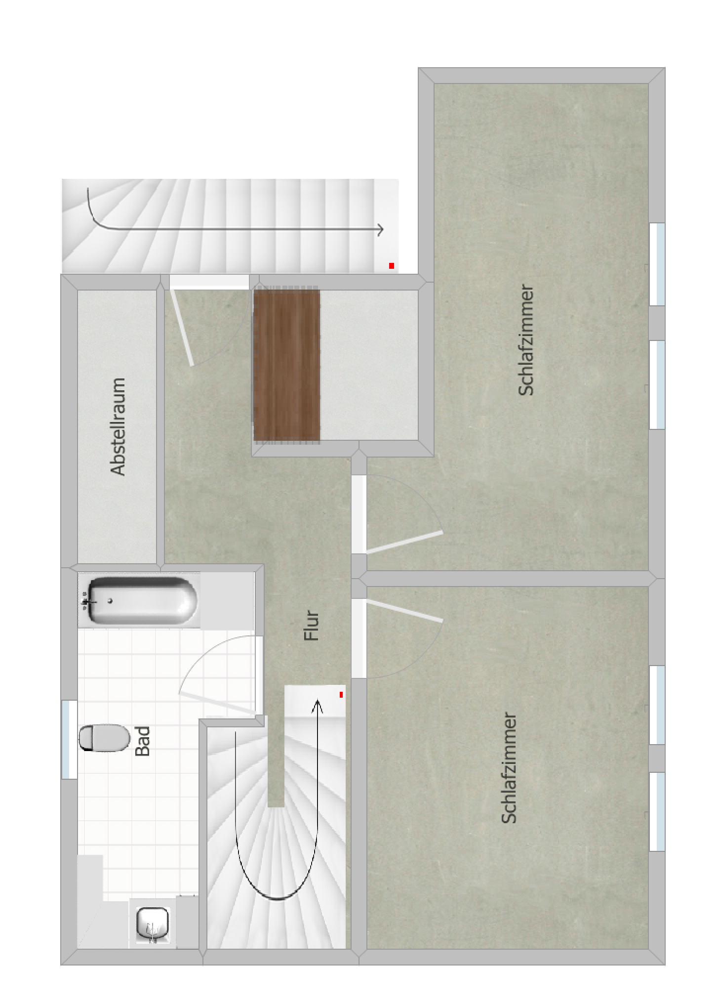 - Ausstattung des Bades Dusche, Badewanne, Fenster